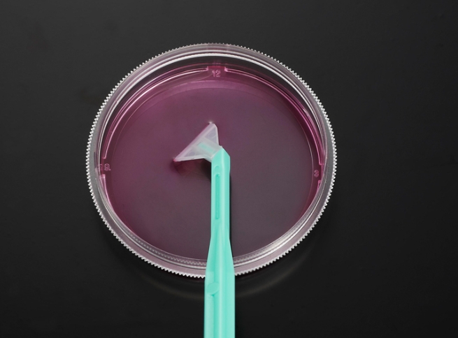 可旋式細胞刮刀在使用的過程中通過食指在刀柄上輕微的按壓,可推動手柄向下朝向容器底部,輕微的旋轉(zhuǎn)手柄,可讓刮刀葉片轉(zhuǎn)向所需的方向,更加方便的回收細胞。 長度規(guī)格:23cm 30cm 刀片規(guī)格:12mm 20mm